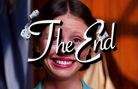 alt : derrière la mention « The End » du générique de fin, le sourire déchirant de Mia Goth