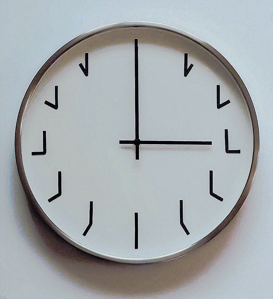 alt : horloge sur laquelle les chiffres des heures sont remplacés par l’image de l’angle formé par l’aiguille des heures et celle des minutes à l’heure correspondante
