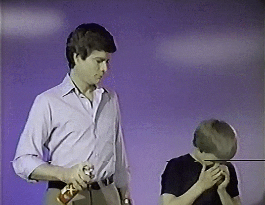 alt : un père vaporise généreusement son fils avec un aérosol aux pesticides, le fameux « spray coiffant Duplomb », réputé pour son effet radical sur les parasites animaux et végétaux des cultures et indispensable pour faire briller ou donner du volume à ses enfants