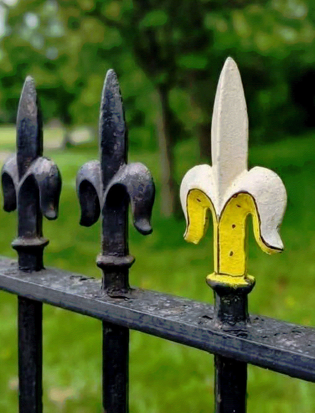 alt : grille de parc avec motif de fer de lance fleur de lys de banane en acier forgé