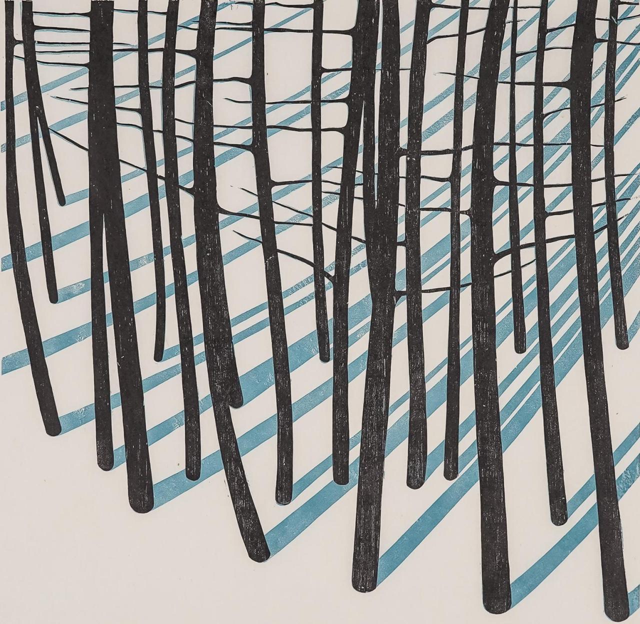 Sabra Field (American, b. 1935, Tulsa, OK, USA) – Winter Woods, Woodblock Print Ink on Paper