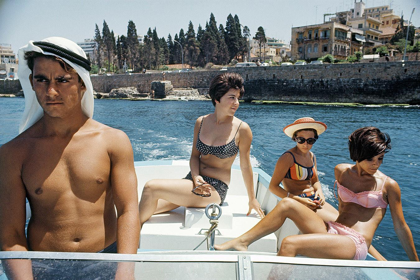 alt : trois femmes en maillot de bain sur un hors-bord par une belle journée ensoleillée au Liban