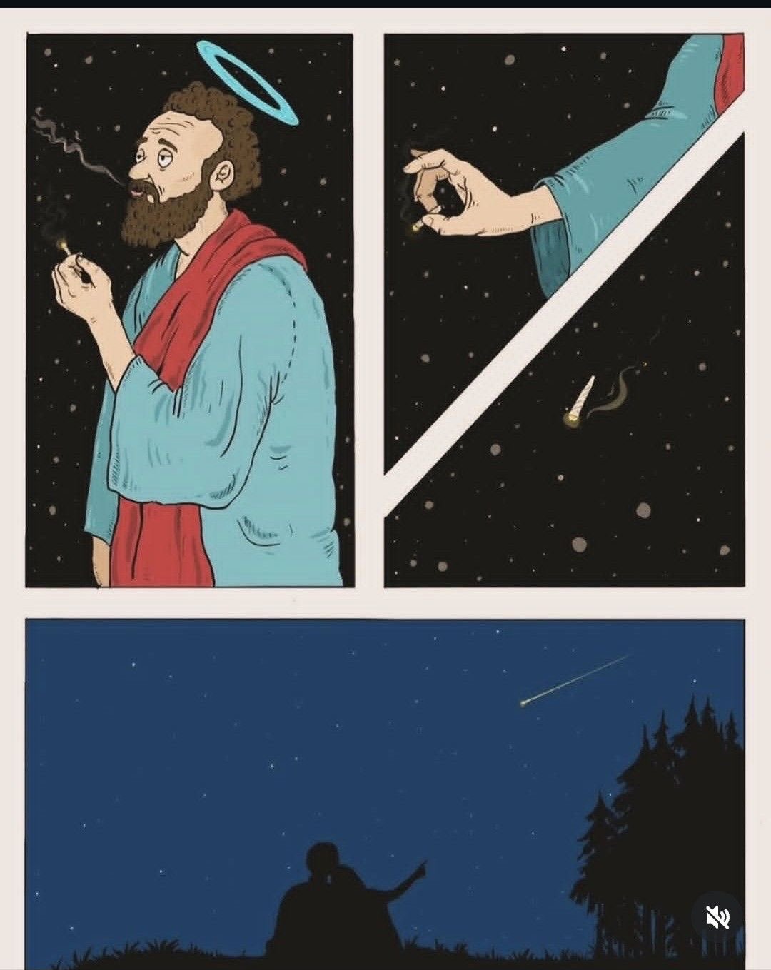 alt : saint Pierre jette son mégot, une étoile filante apparaît dans le ciel