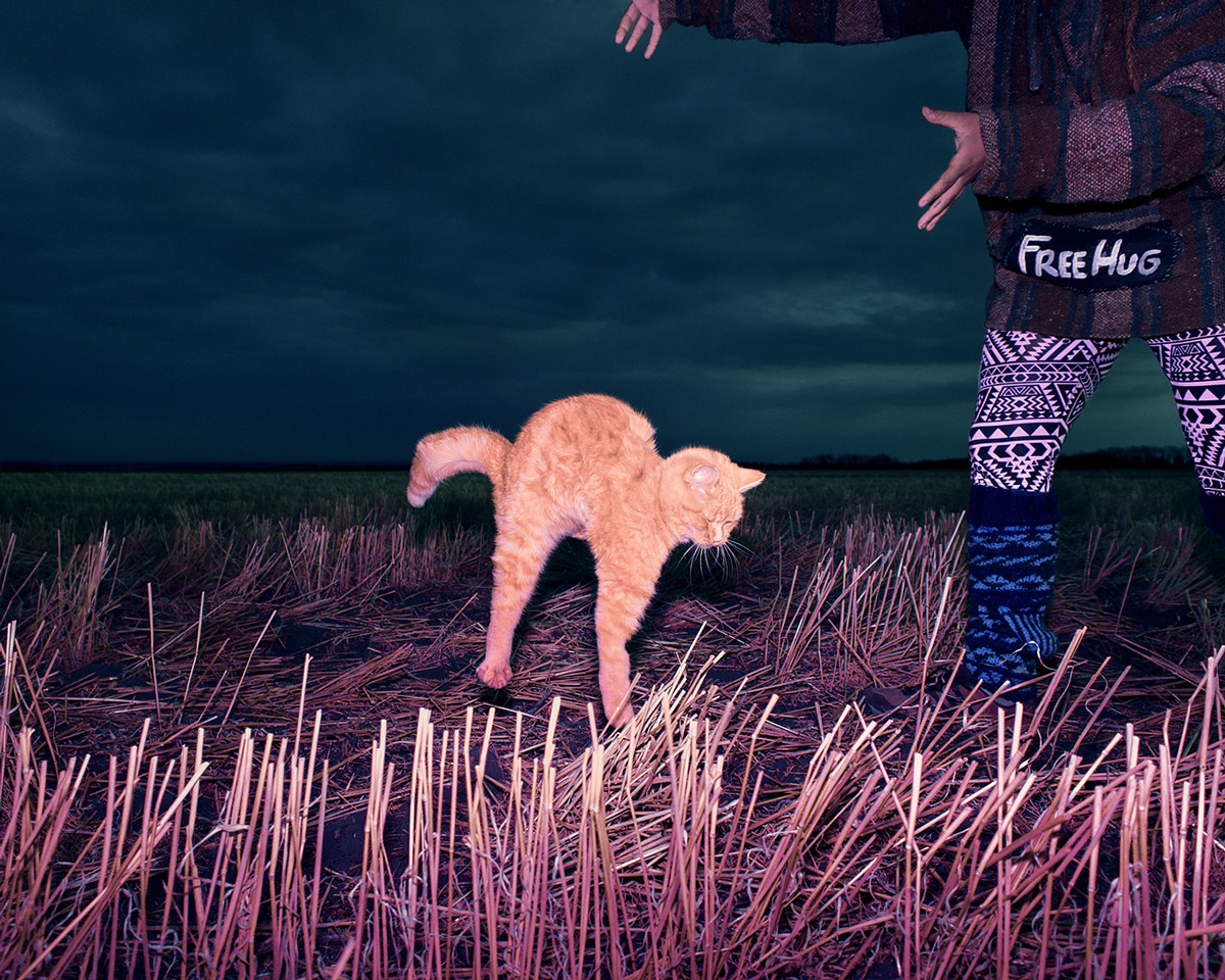 alt : le chat rouge sur sa maison dans la nuit